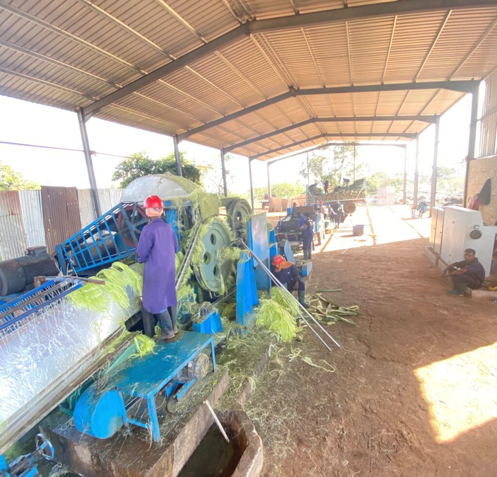 Operations begin on the land, where sisal is grown through structured farming systems and grower partnerships that support consistency and reliability of raw material supply. This foundation enables controlled processing, careful handling, and fibre preparation that meets expected quality standards.